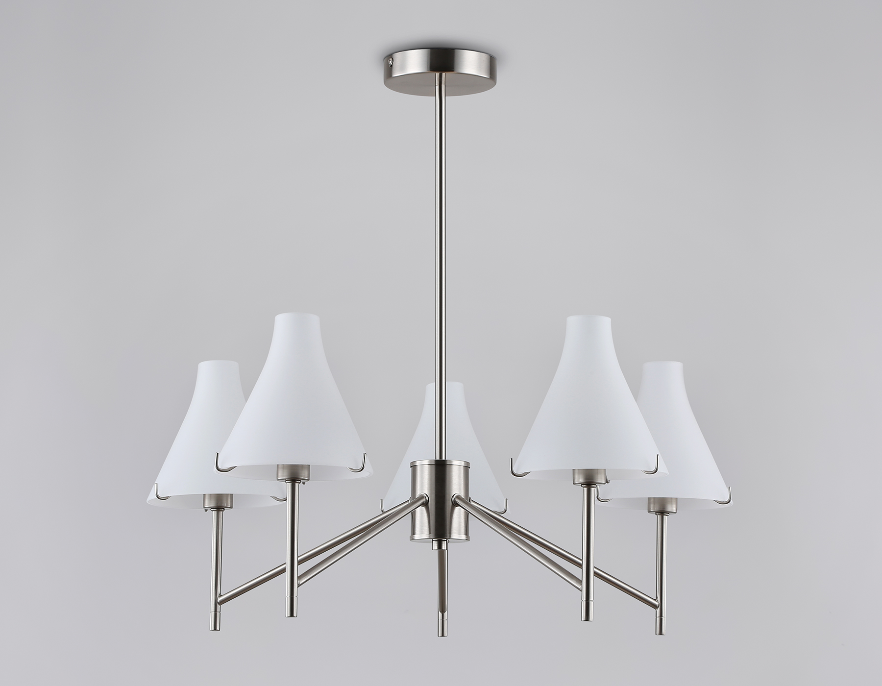 Люстра со стеклянными плафонами на штанге LH57123/5 SN/FR никель/белый матовый E14/5 max 40W D650*590