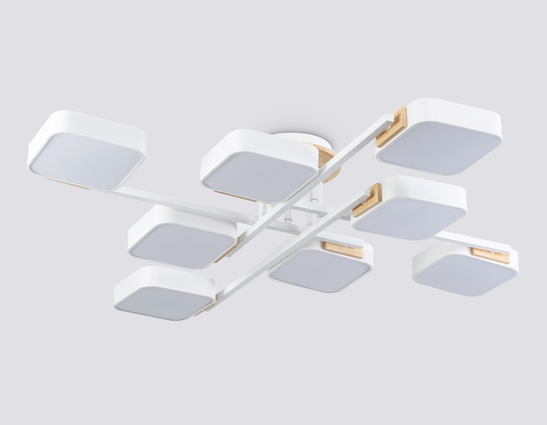 Люстра светодиодная на штанге FL4888/8 WH/WD белый/дерево 144W 3000-6000K 960*960*160 (без ПДУ)