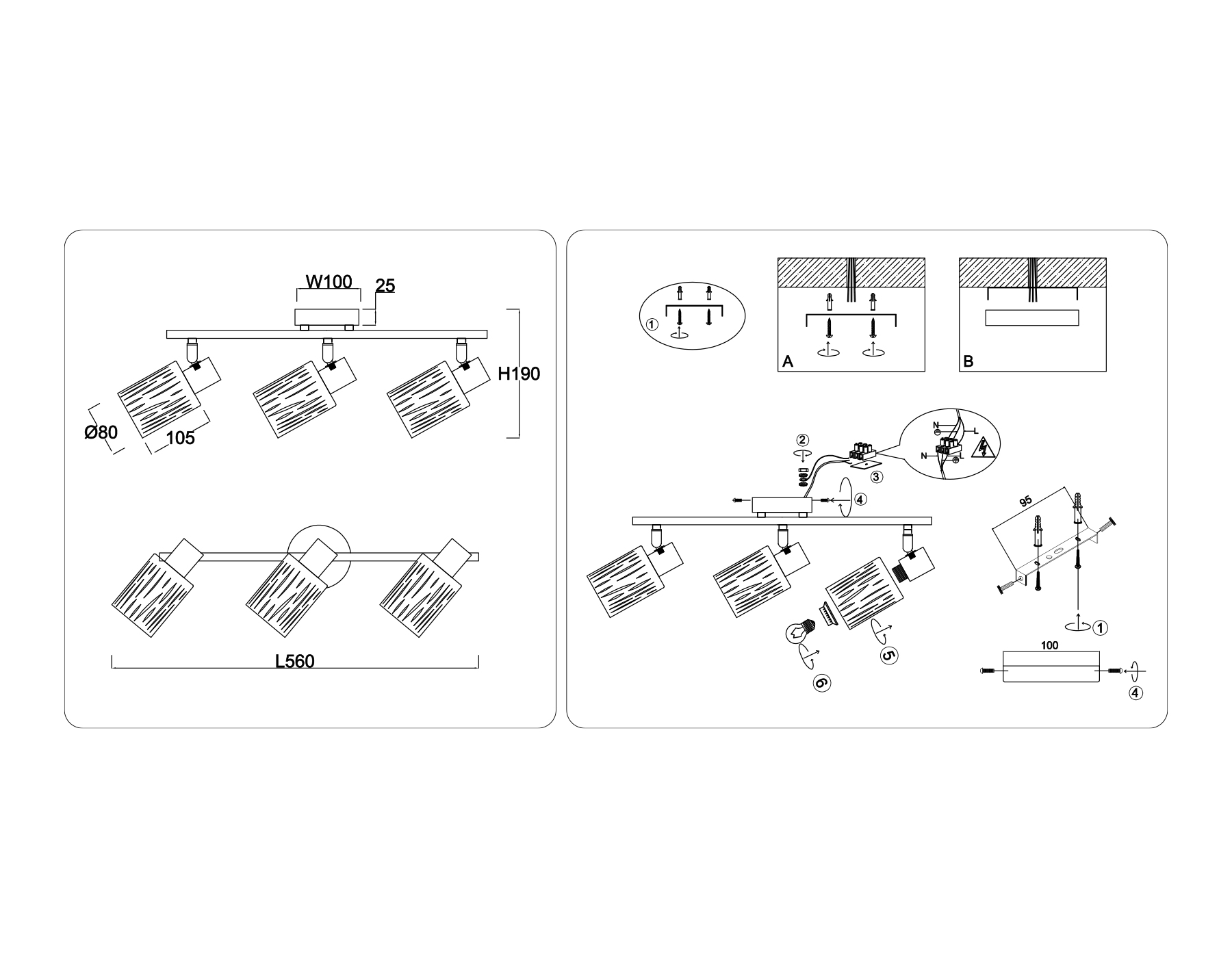 Настенно-потолочный спот в стиле лофт TR8665/3 WH белый E14/3 max 60W 560*100*190