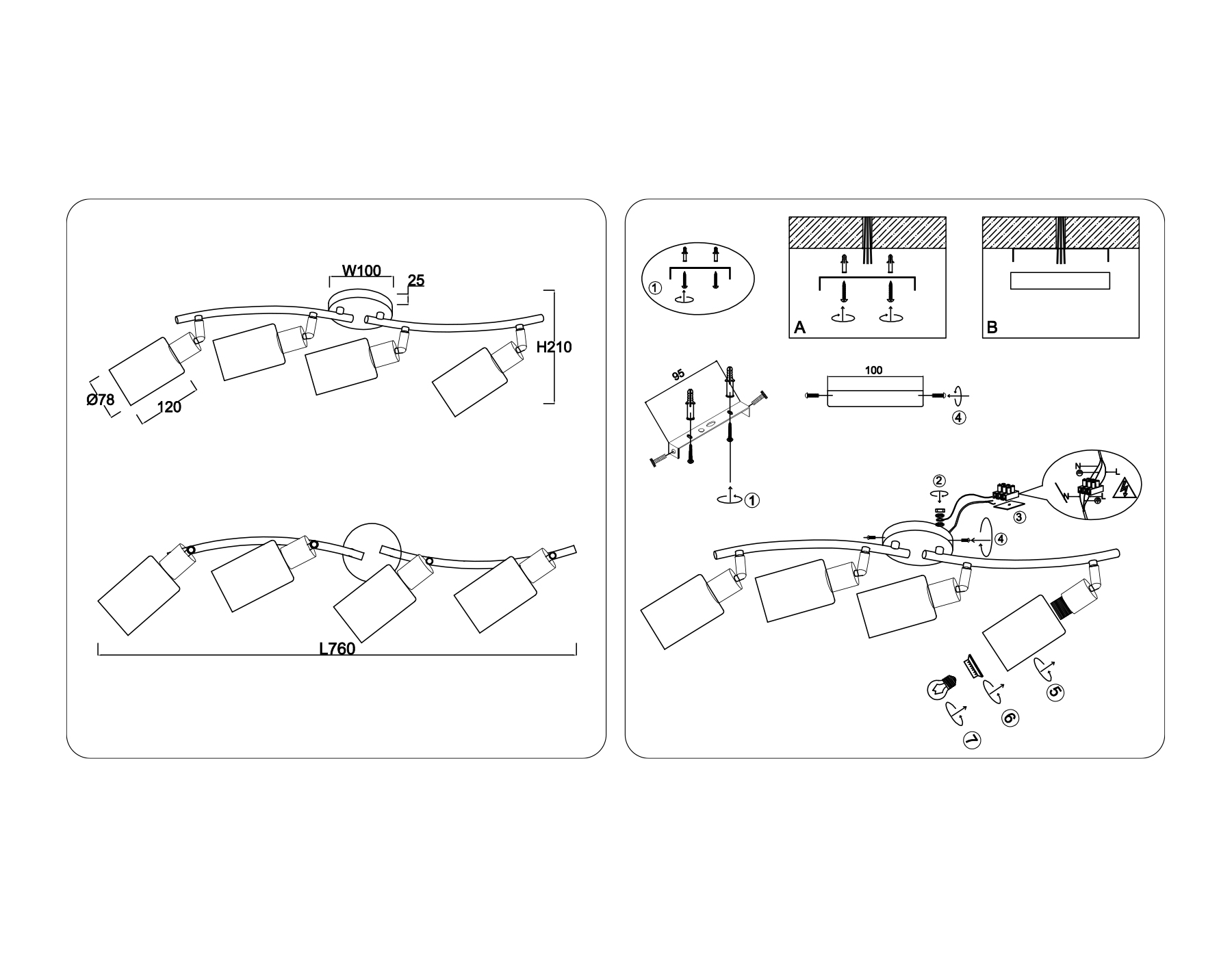 Настенно-потолочный спот в стиле лофт TR8723/4 BK/WD черный/дерево E14/4 max 60W 760*100*210