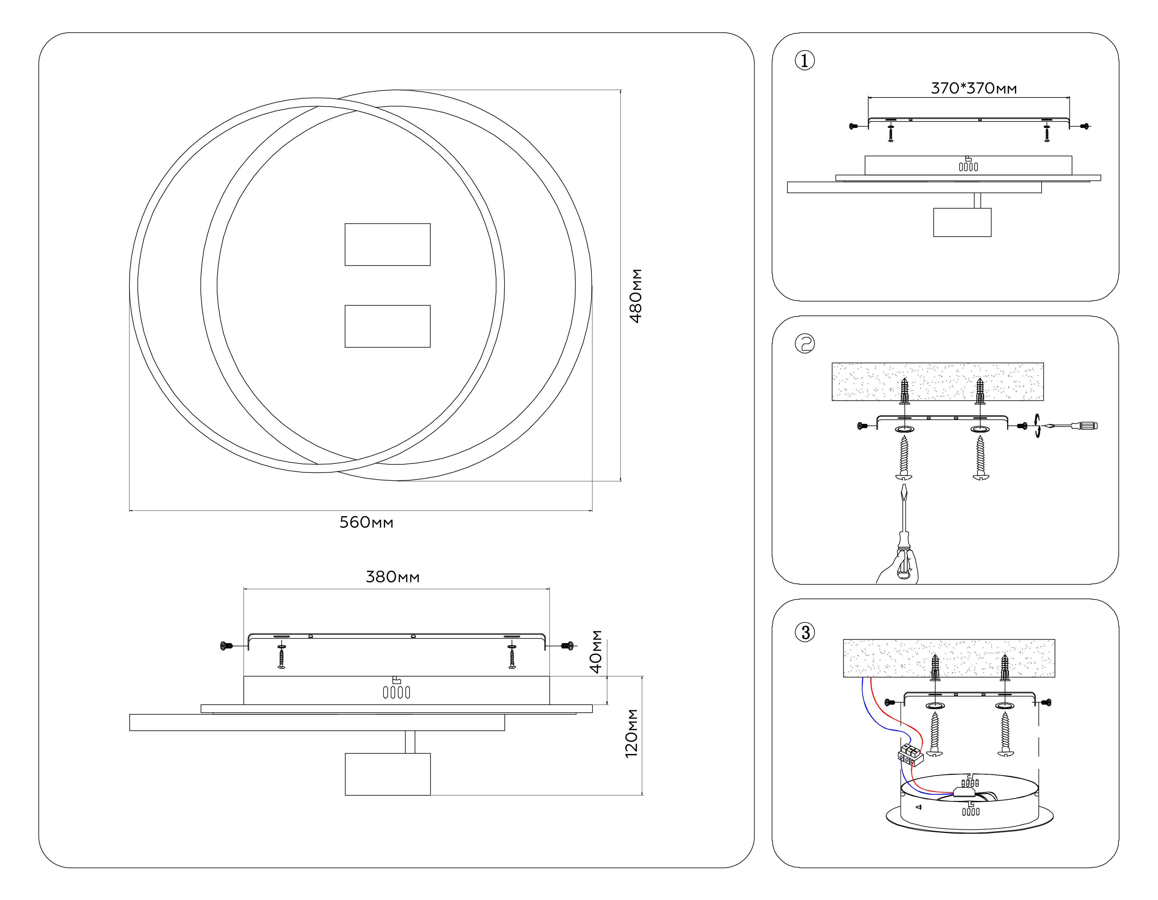 Настенно-потолочный светодиодный светильник с пультом FL51392/1+2 WH/BK белый/черный 3000K-6400K 65W 560*480*120 (ПДУ РАДИО 2.4G)