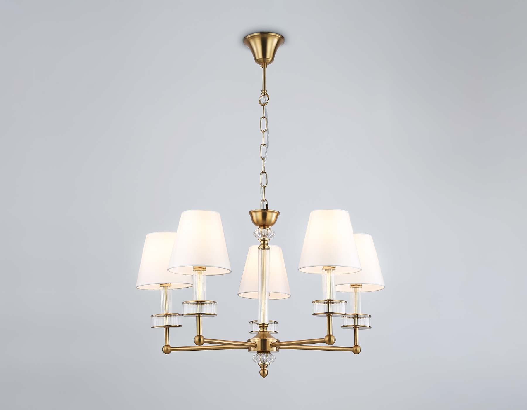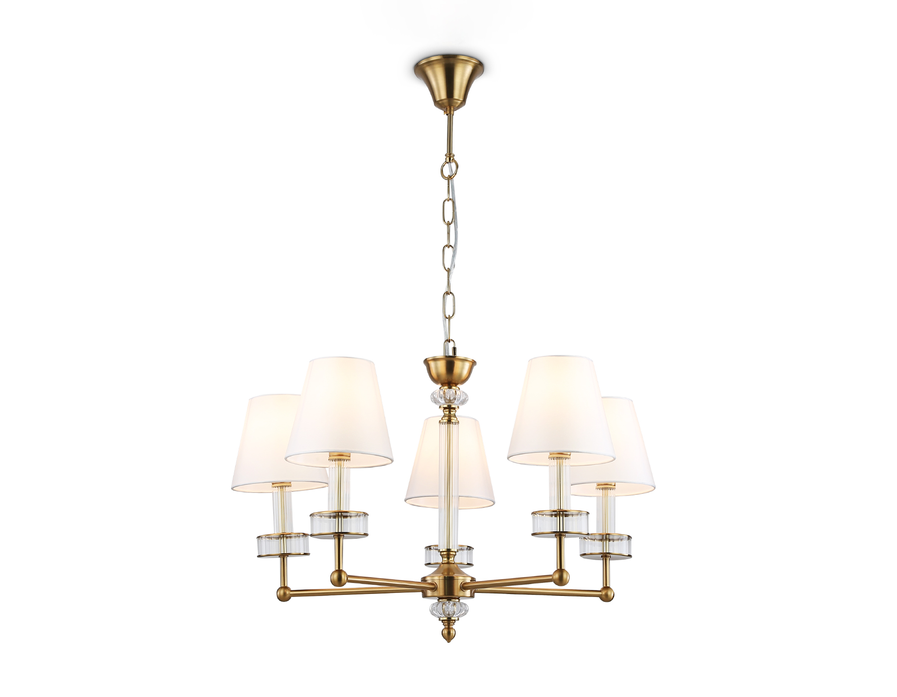 Подвесная люстра с абажурами и хрусталем LH71021/5 BS/WH латунь/белый E14*5 max 40W D670*1130