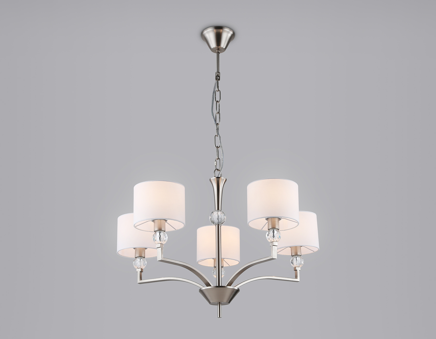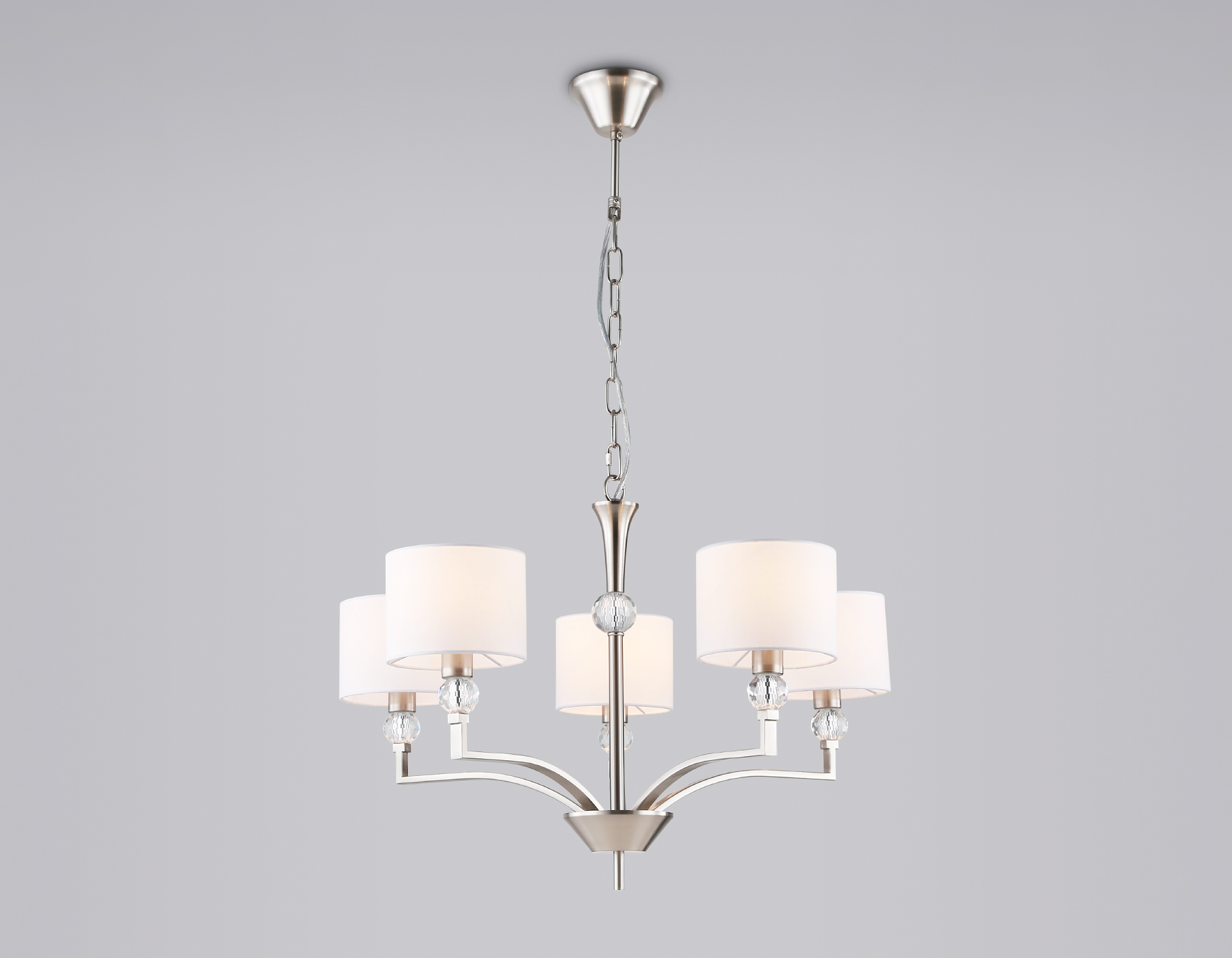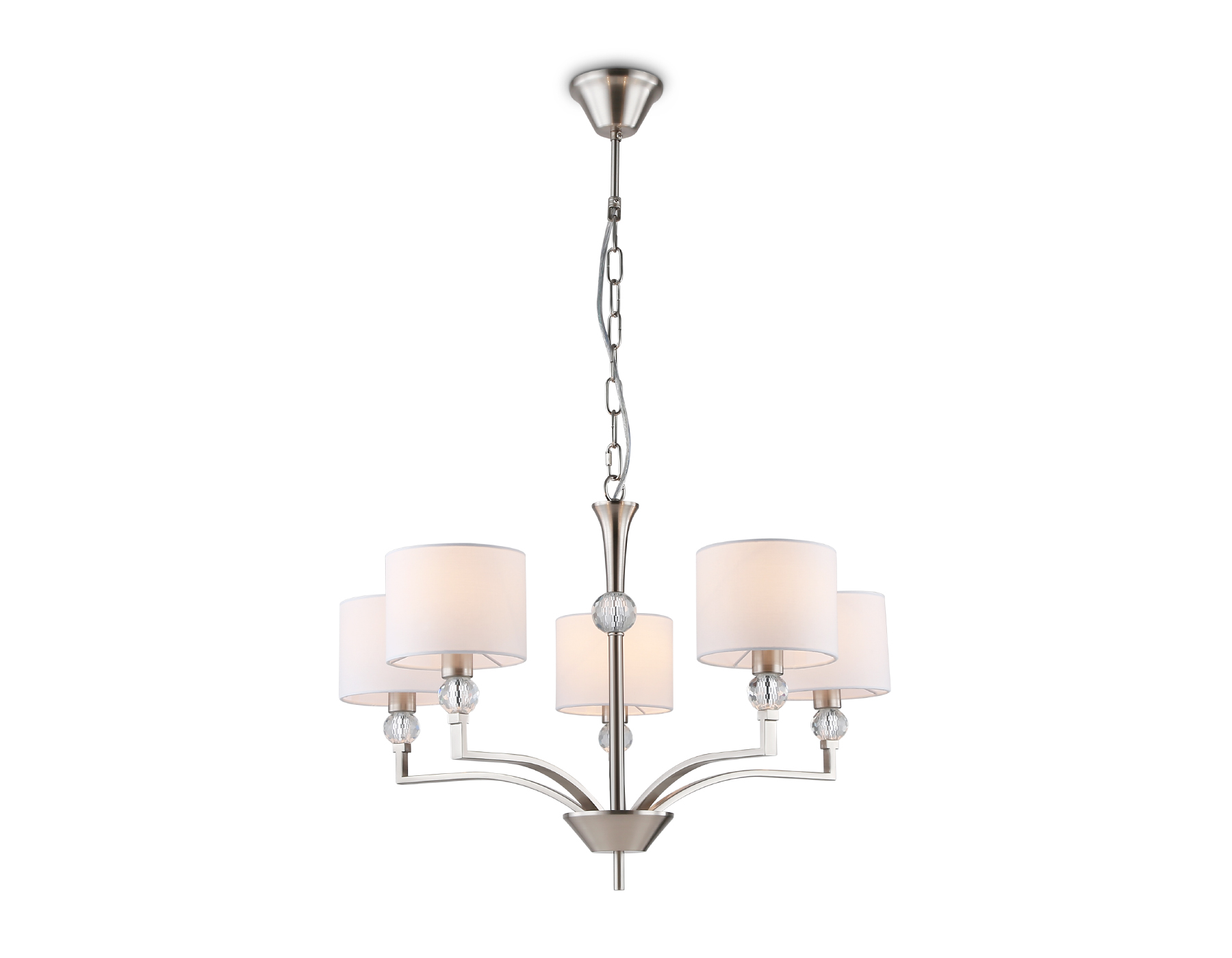 Подвесная люстра с абажурами и хрусталем LH71121/5 SN/WH никель/белый E14/5 max 40W D660*880