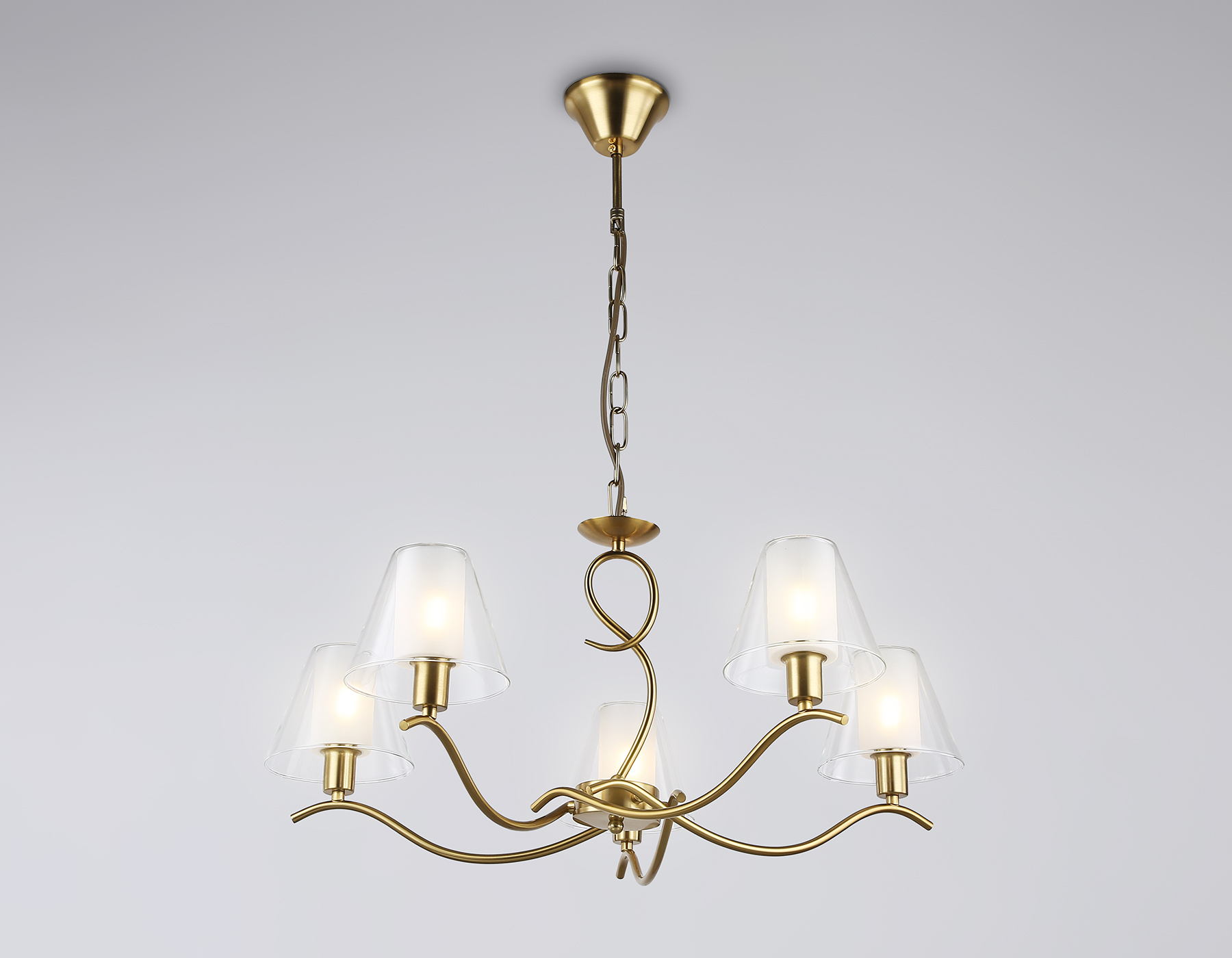 Подвесная люстра со стеклянными плафонами LH57091/5 BS/FR латунь/белый матовый E14/5 max 40W D690*790