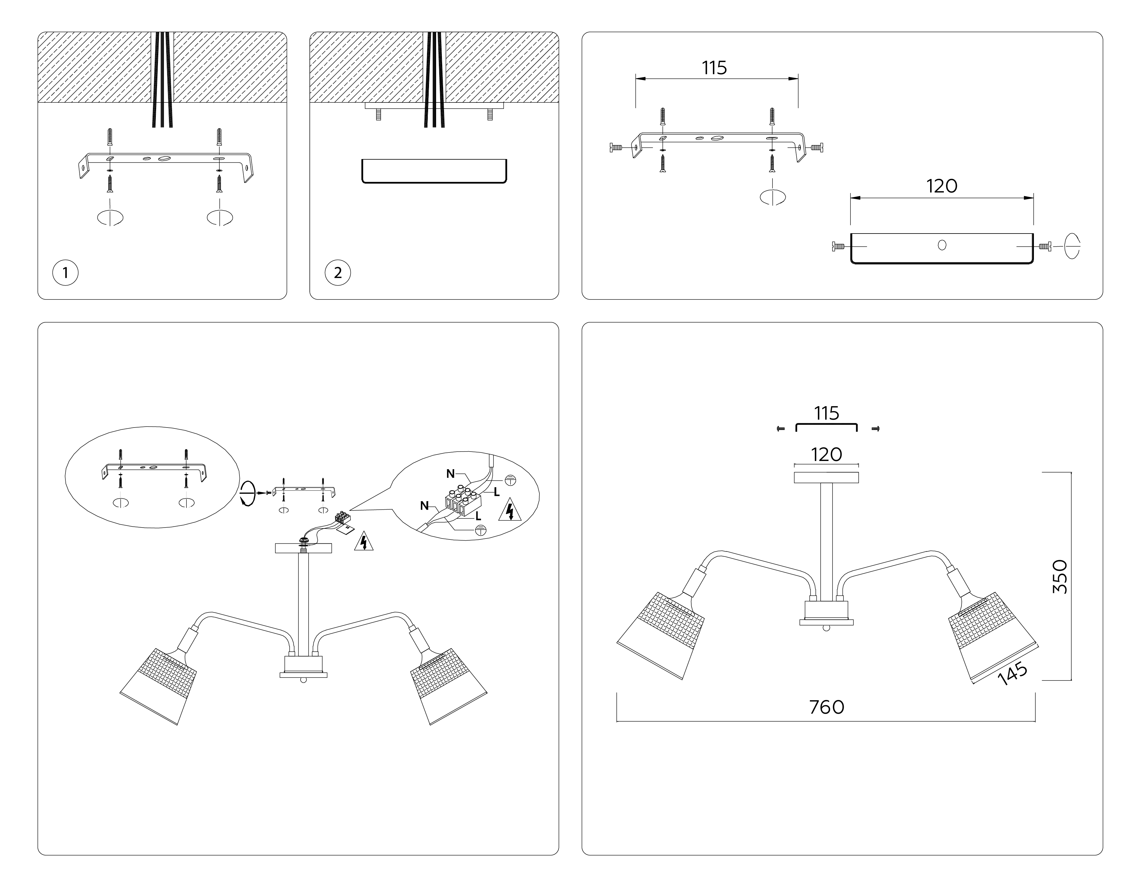 Высота люстры с тросом, мм