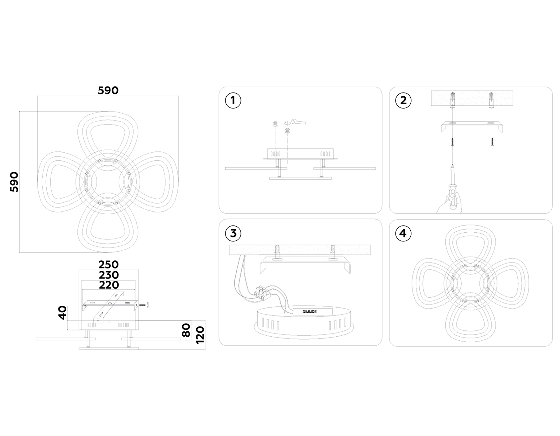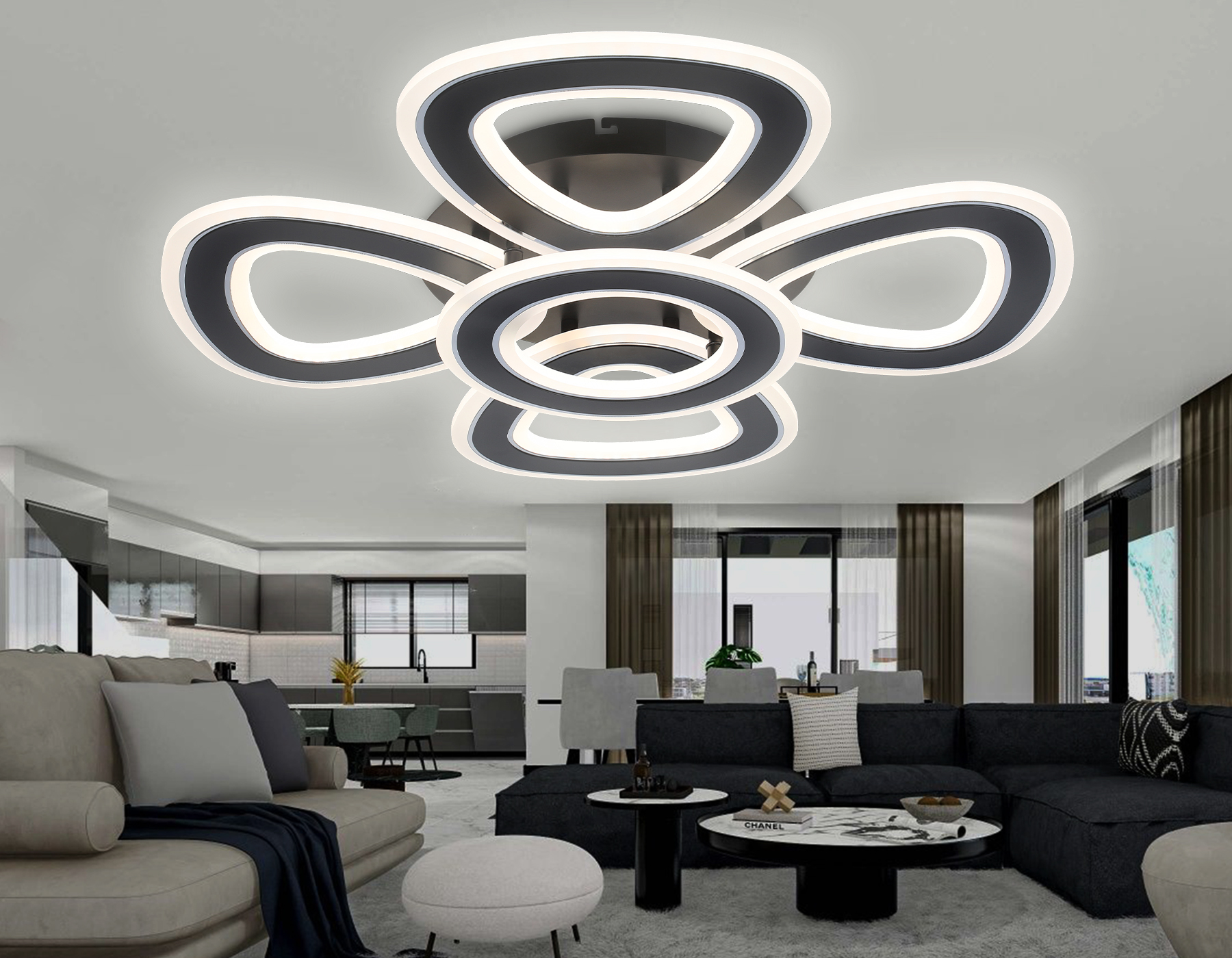 Потолочный светодиодный светильник с пультом FA8926/4+1 BK/CH черный/хром 163W 3000K-6400K 590*590*120 (ПДУ РАДИО 2.4G)