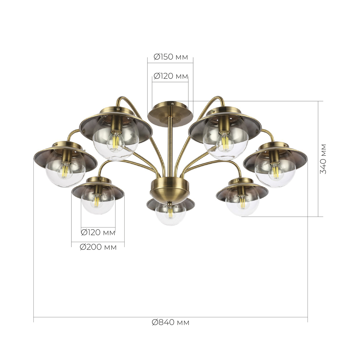 SLE110102-07 Светильник потолочный Античная бронза/Прозрачный E14 7*40W