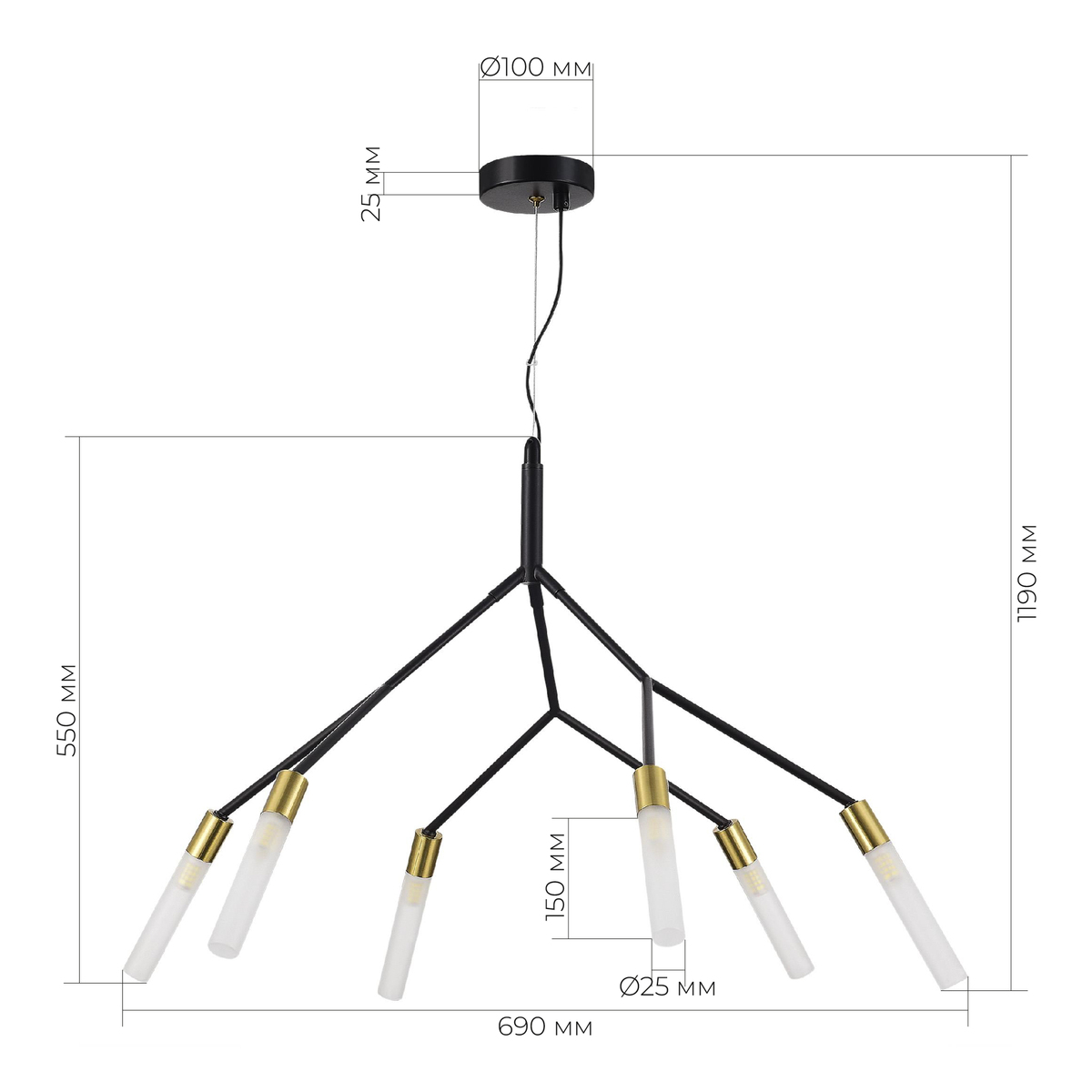 SLE1129-403-06 Светильник подвесной Черный, латунь/Белый G9 6*5W