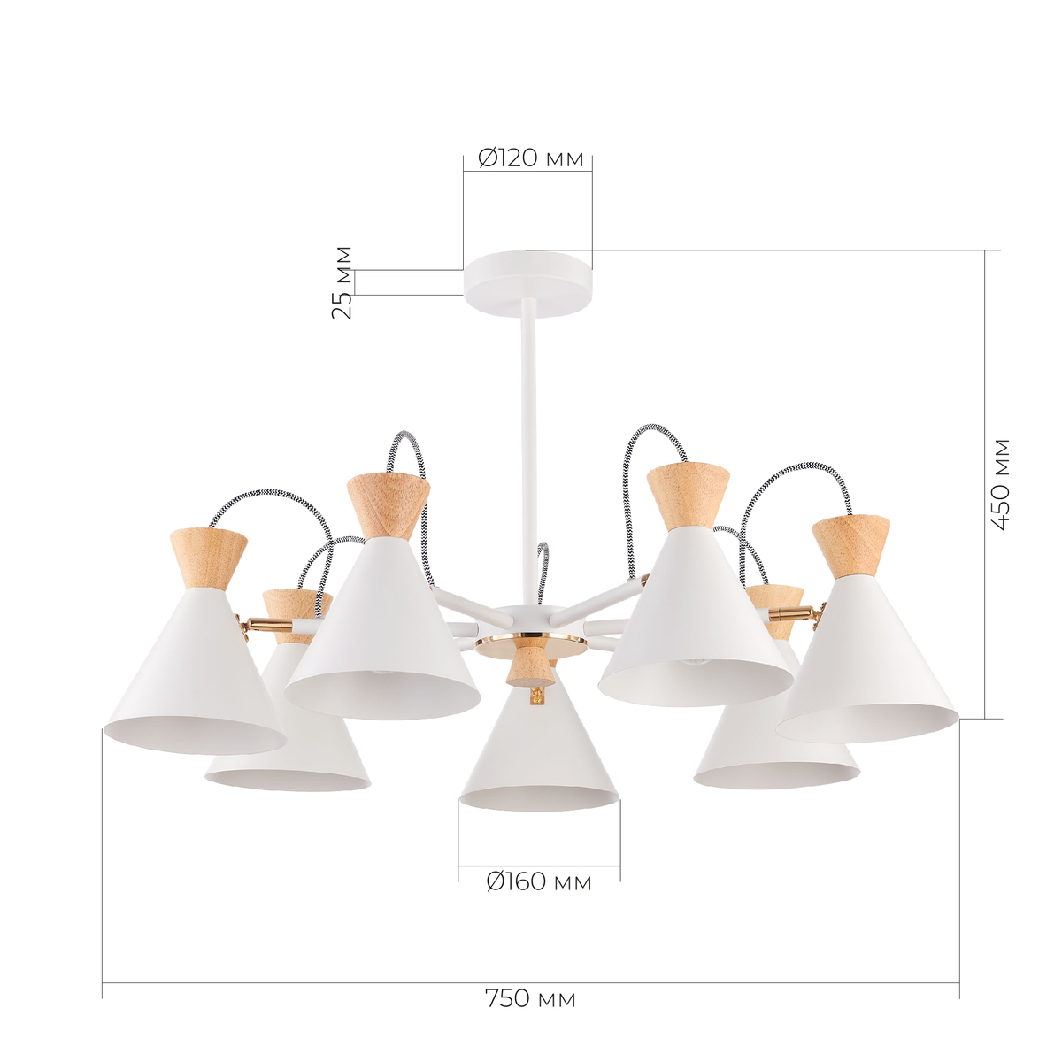 SLE125102-07 Светильник потолочный Белый, Золотистый/Белый, Светлое дерево E14 7*40W