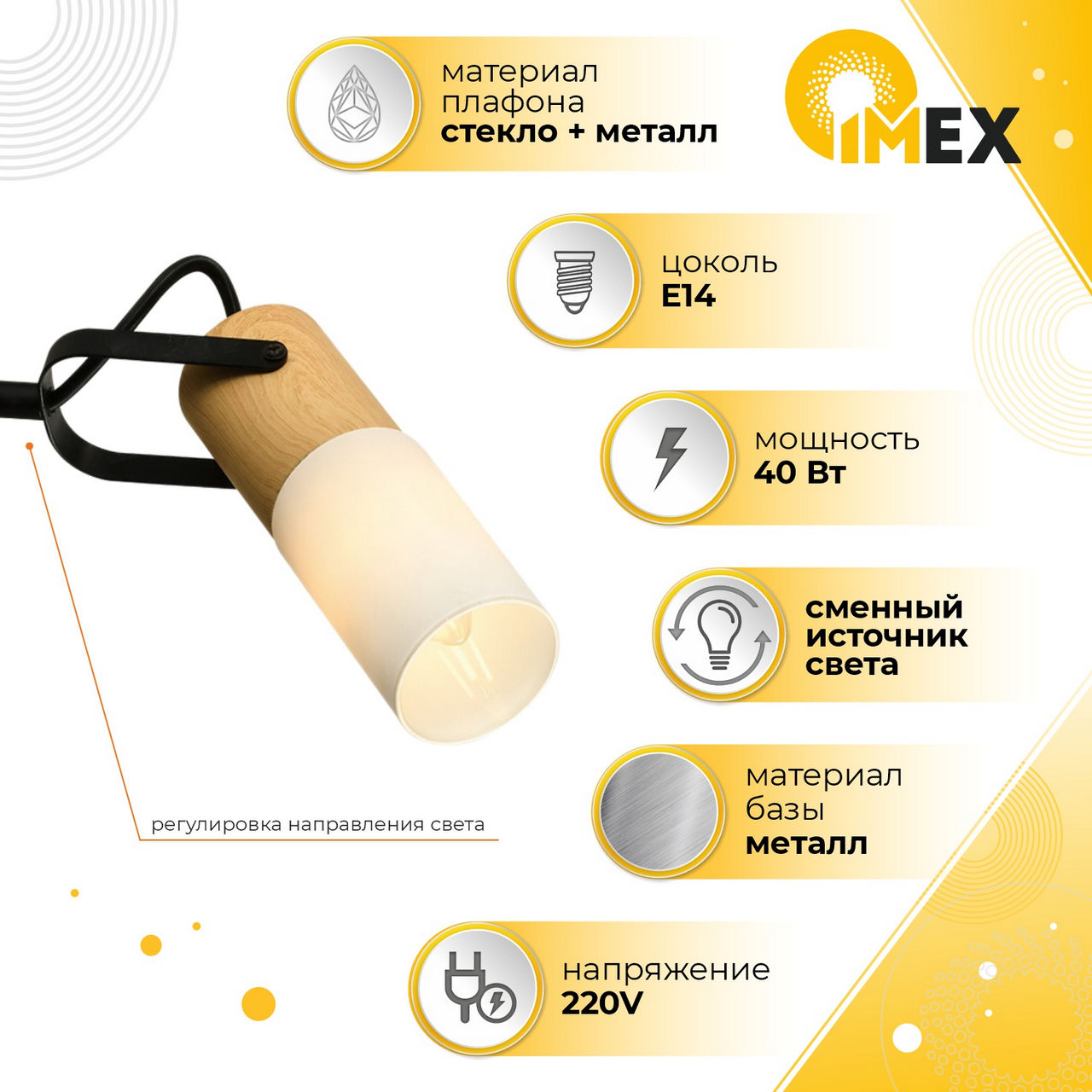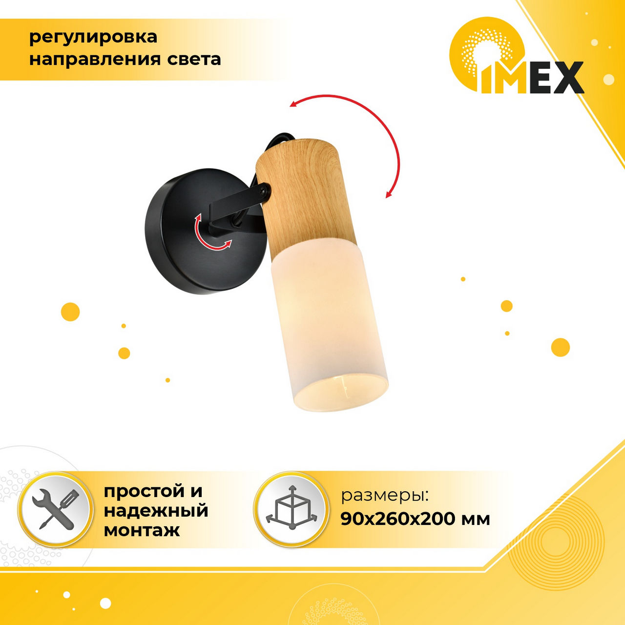 Спот настенно-потолочный E14 1*40W черный+светлое дерево SP.044-11-18