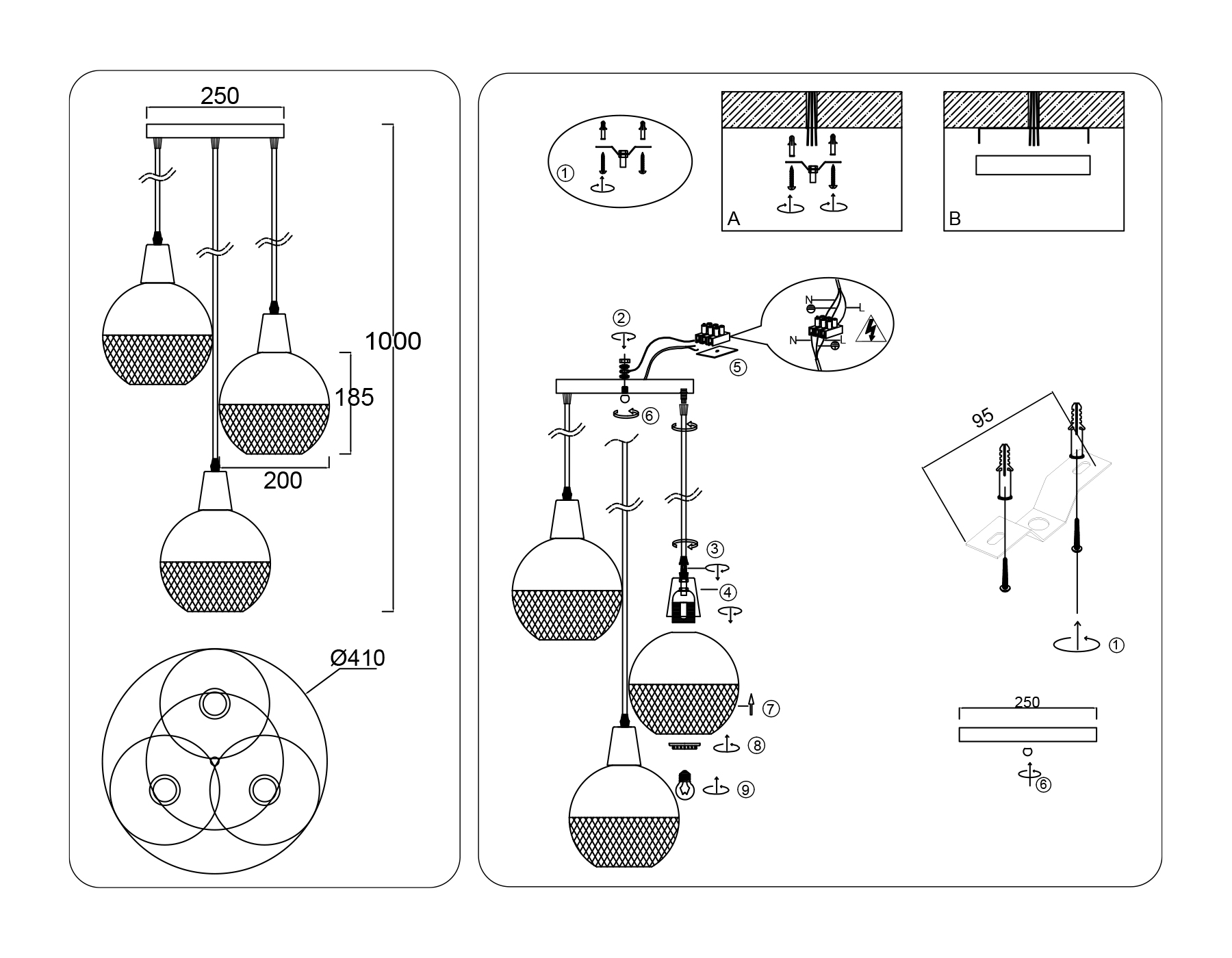 Светильник подвесной TR8503/3 WH/CP белый/медь E27/3 max 60W D410*1000