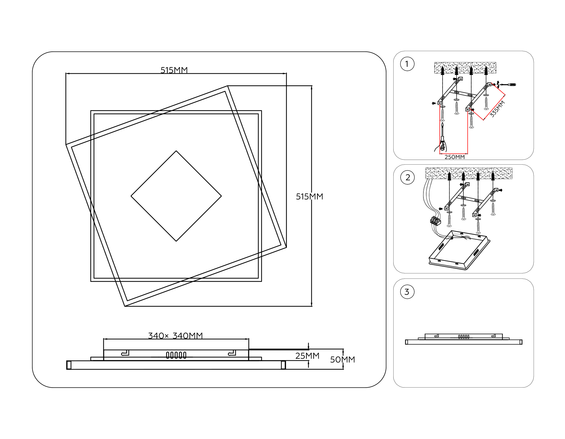 Светильник светодиодный потолочный FL4790 WH/WD белый/дерево 77W 3000-6000K 515*515*50 (без ПДУ)